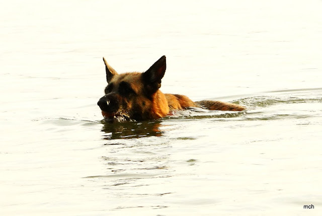 I tam niestety dopadli nas ludzie, rodzina z dziećmi, która nie chciała nas przepędzić o dziwo, a po prostu popatrzeć na pływające psy. Oczywiście standardowe zapytania, a czy to rodzeństwo, a czy psa oddaje się na szkolenie etc.etc.I jak tu wytłumaczyć tak na szybko, że owczarek to styl życia ? I, że żeby psy czuły się swobodnie obok tych tłumów, nie interesowały się niczym poza zabawą z właścicielem, bywanie wszędzie z właścicielem musi być normą a nie czymś wybitnym ?