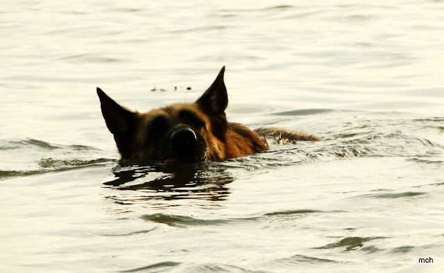 I tam niestety dopadli nas ludzie, rodzina z dziećmi, która nie chciała nas przepędzić o dziwo, a po prostu popatrzeć na pływające psy. Oczywiście standardowe zapytania, a czy to rodzeństwo, a czy psa oddaje się na szkolenie etc.etc.I jak tu wytłumaczyć tak na szybko, że owczarek to styl życia ? I, że żeby psy czuły się swobodnie obok tych tłumów, nie interesowały się niczym poza zabawą z właścicielem, bywanie wszędzie z właścicielem musi być normą a nie czymś wybitnym ?
